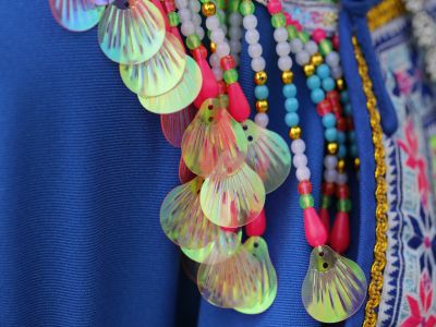 苗族女子對襟刺繡上衣-衣領(lǐng)側(cè)面繡花及裝飾