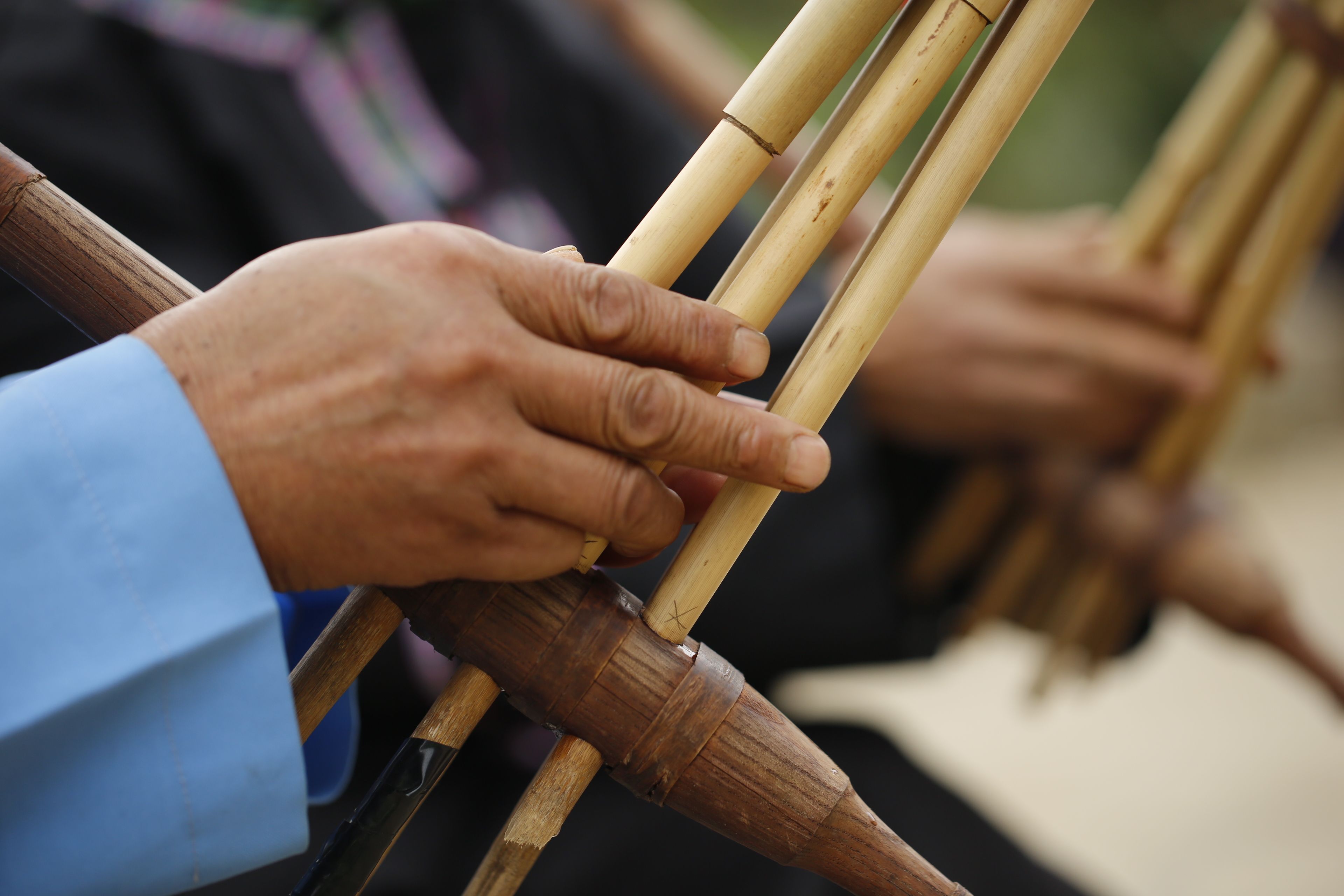 苗族花鼓舞傳承人鄧開倫教授他人吹奏蘆笙1